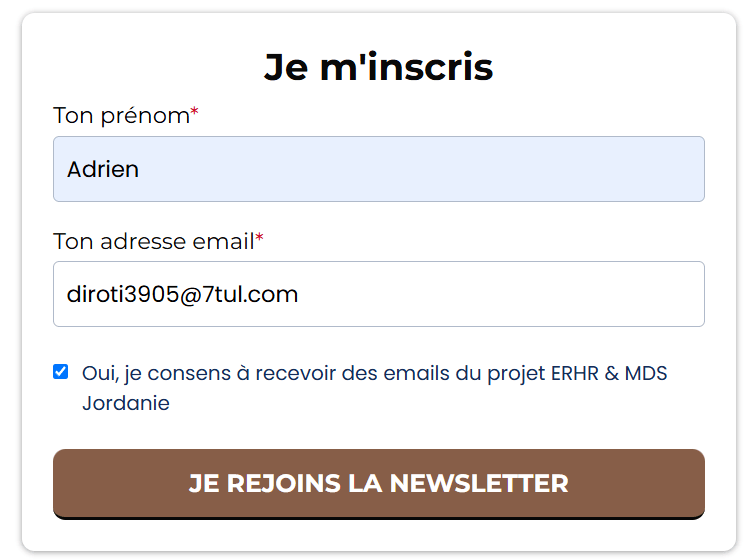 AIDE POUR L'INSCRIPTION À LA NEWSLETTER