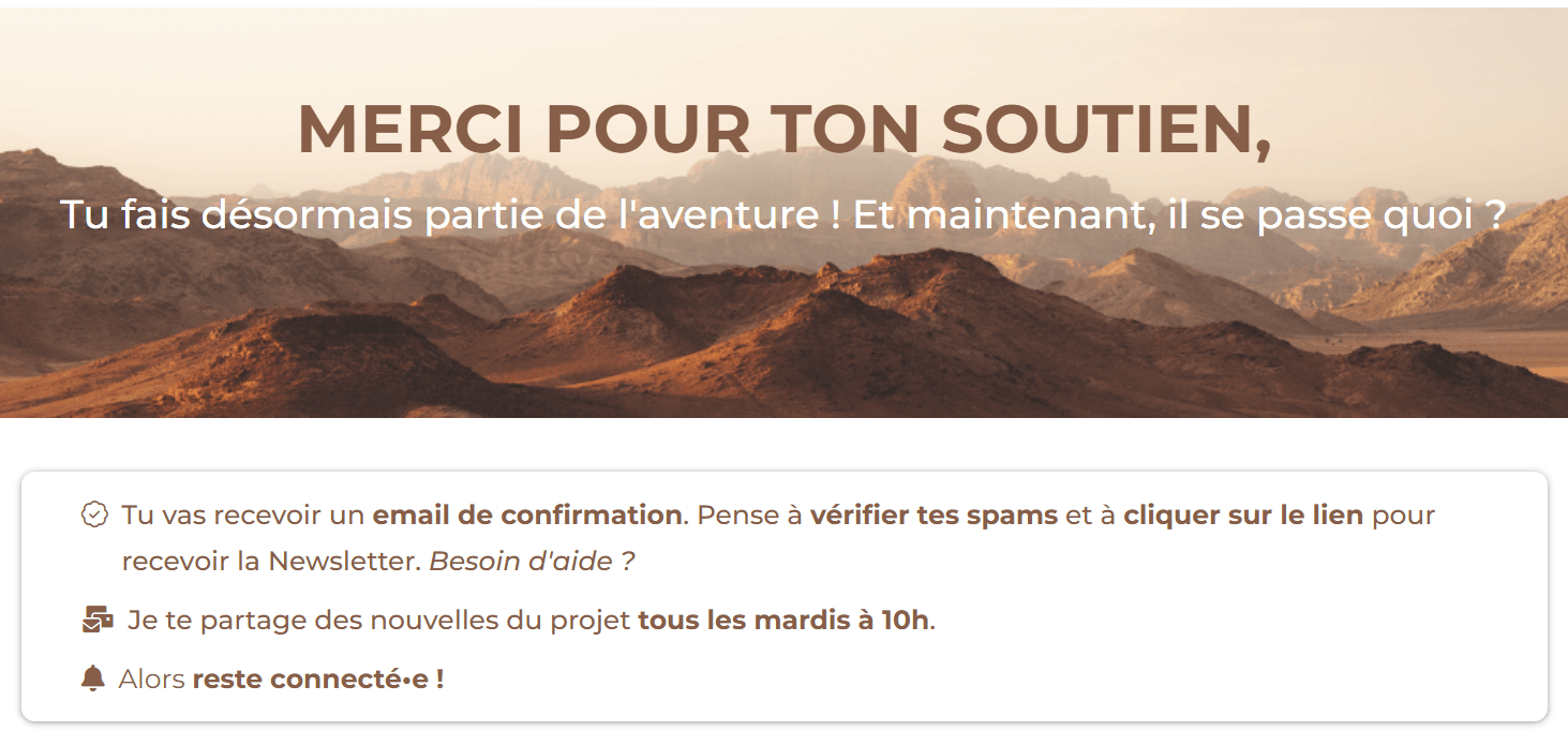 ÉTAPE 2 : ÊTRE REDIRIGÉ•E VERS LA PAGE DE REMERCIEMENT