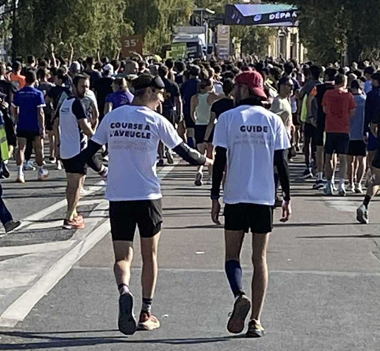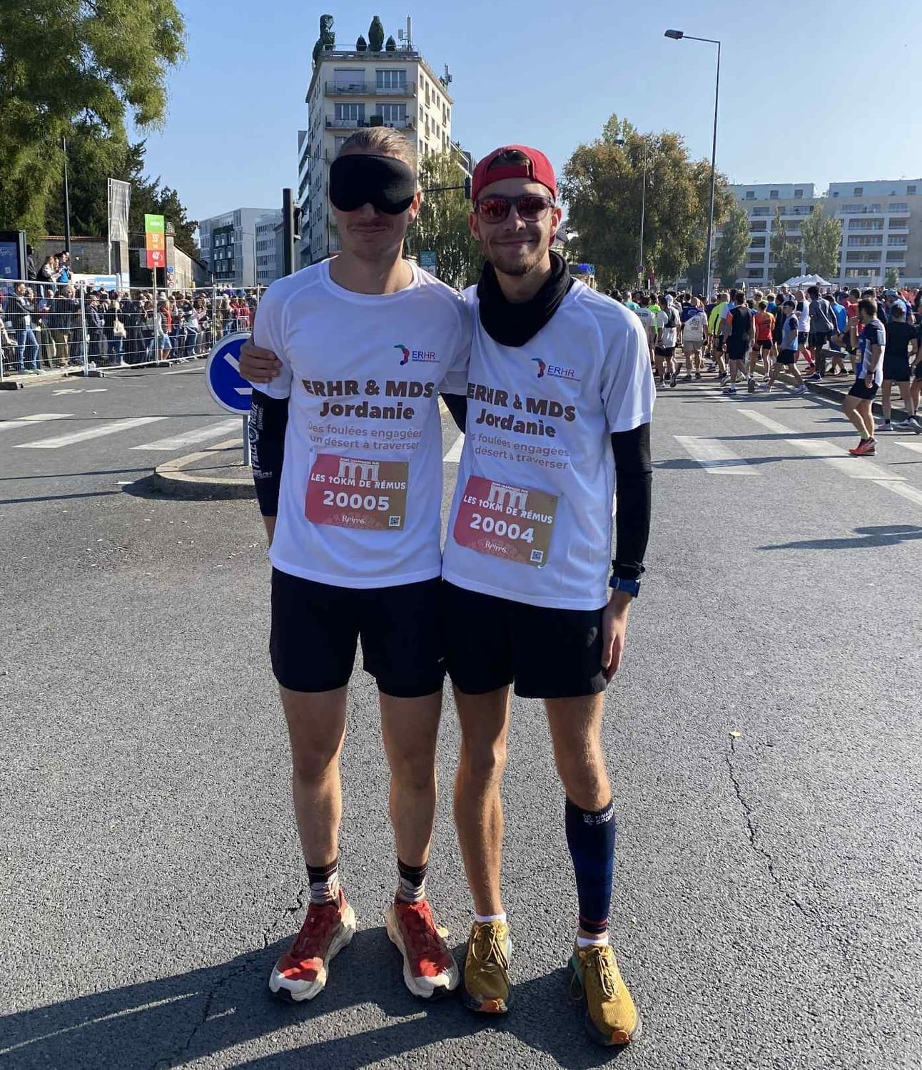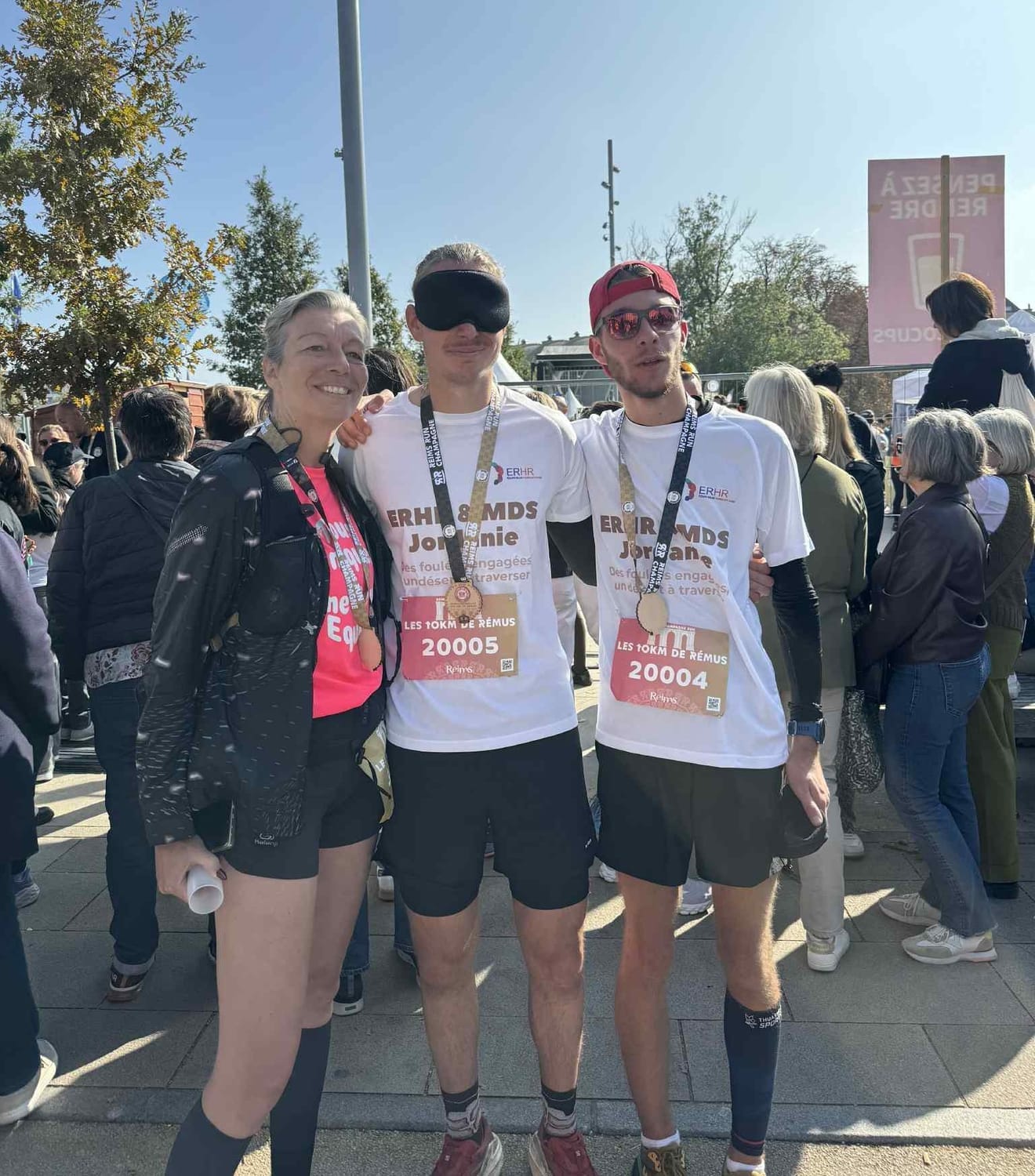 Dimanche 12 octobre, j’ai pris le départ des 10 km de Reims, les yeux bandés, relié à Jules (mon guide). Une idée qui, sur le papier, frôle la folie. Mais derrière ce défi sportif symbolique, il y avait une volonté de sensibiliser à l’inclusion, à la déficience visuelle et, plus largement, aux handicaps rares. Une manière concrète de donner corps au projet et d'y développer davantage la dimension humaine.