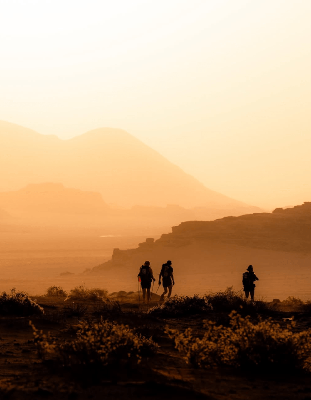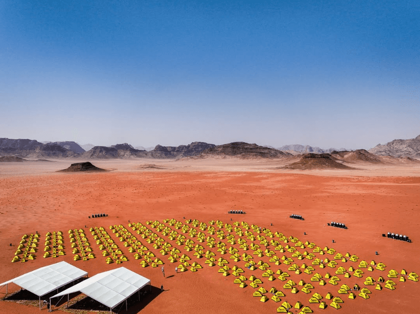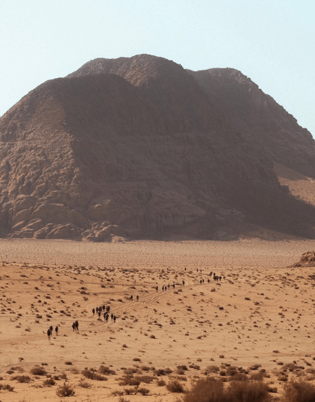 Réveillés à 4h, les participants prennent la direction du Wadi Rum, le désert de sable rouge aux reliefs sculptés par le vent.