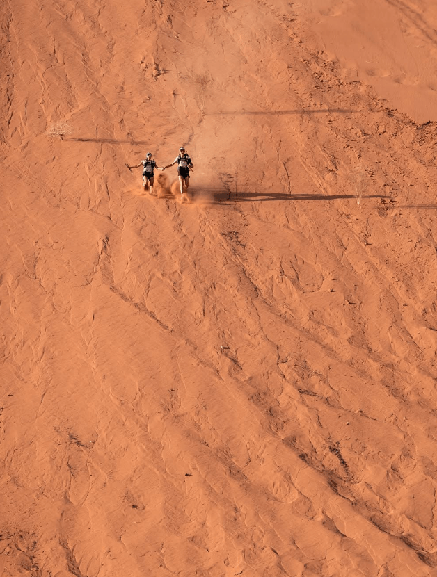 C’est l’une des particularités du MDS Jordanie : les coureurs peuvent choisir leur distance en cours de route, à savoir 20, 40 ou 60 km. Une liberté grisante, mais exigeante. Certains partent déjà fixés sur leur objectif, d’autres hésitent jusqu’au dernier moment. L’ego fini souvent par avoir le dernier mot. Il pousse à aller plus loin, à repousser ses limites, quitte à le regretter plus tard.